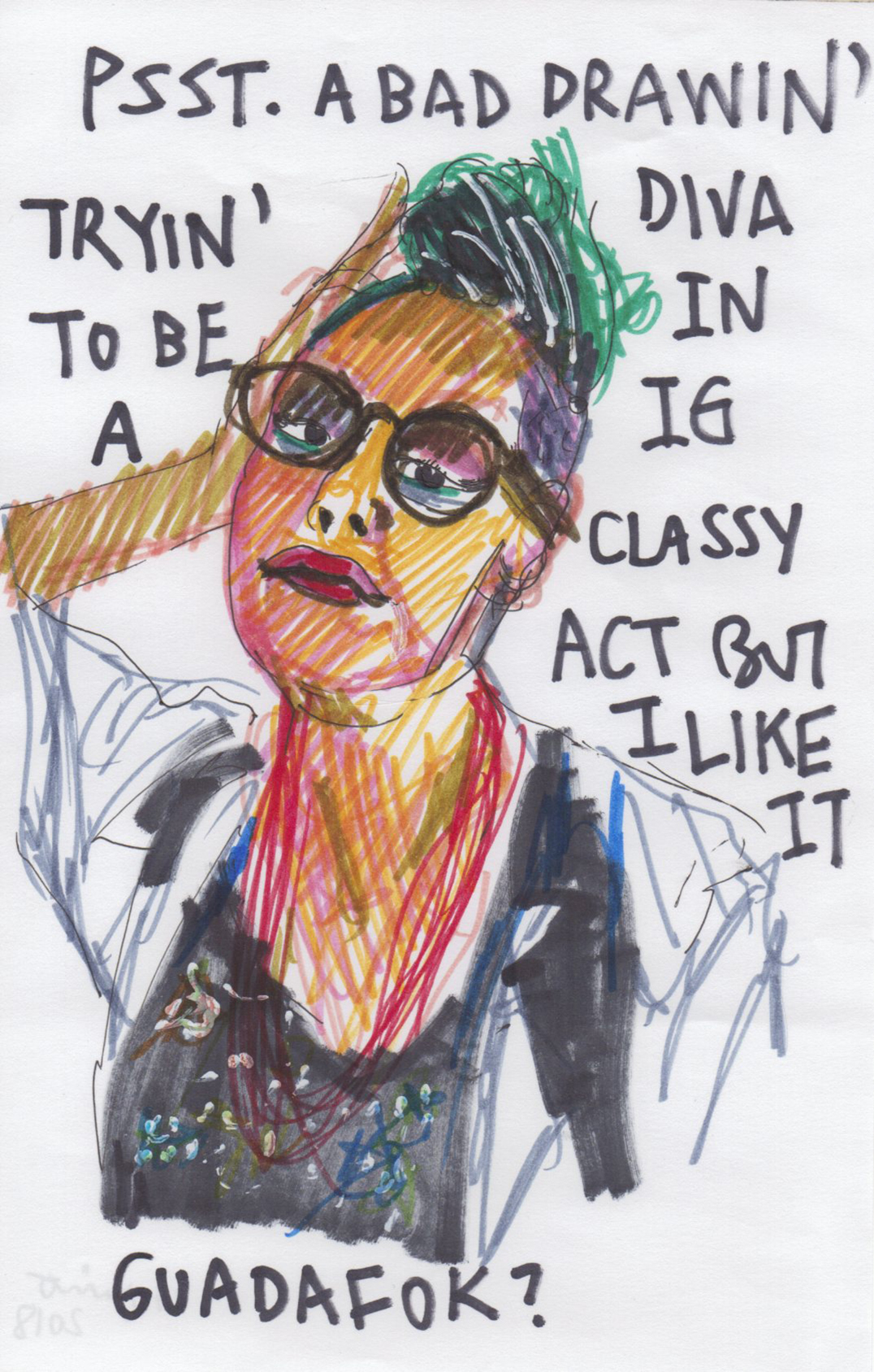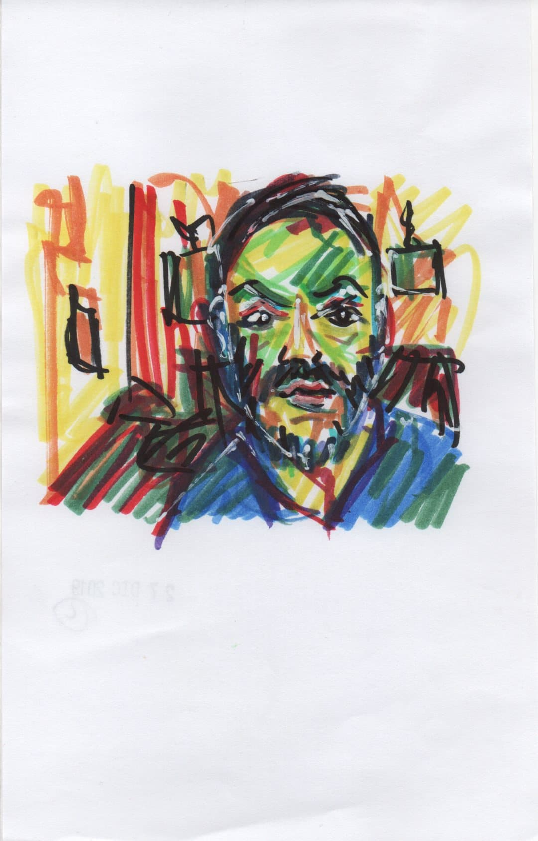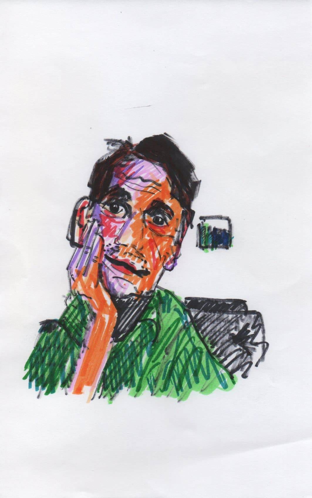 Los dibujos se presentan como intentos humorísticos con la capacidad de sorpresa en resultados que no están controlados. Lejos de pretenciones académicas, se deja que la naturaleza de los mismos hable más allá de la mano de quien los hace. El dibujo en esencia es entonces un ejercicio de la mirada y el cerebro más que de la mano y en consecuencia, la dislocación entre ambos polos produce en algunos casos nuevas formas de repensar lo que se ve. La serie de dibujos incluye "Retratos" en los que se propende por una visión psicológica de los sujetos; "Autorretratos" (ABK, A1C, A2C, AUM, ARB) que permiten resignificar la visión personal que se tiene mediante la observación interior; "Pensamientos" que hacen un llamado metafórico a recuerdos íntimos que se hicieron en fechas específicas y que se desvían en flores genéricas; "Olas" a manera de reminiscencia de recuerdos que van y vuelven a las orillas de la nostalgia; "Tragedias" que trivializan y vacían de significado las imágenes y el contexto en el que se originaron; "Retratos hablados" que son descripciones en palabras en un intento de generar canales del ojo a la boca para convertir en el acto hablado la mirada; y "Variaciones" sobre imágenes clásicas que se adaptan a la técnica de los materiales simples de papelería.