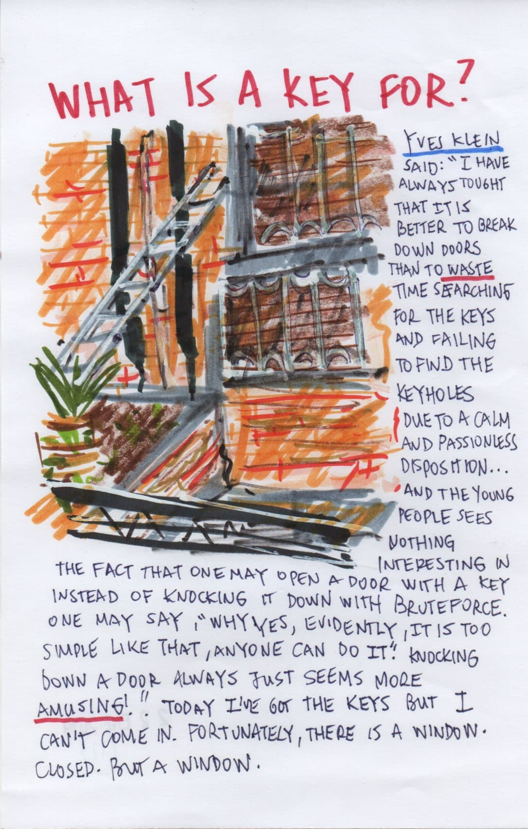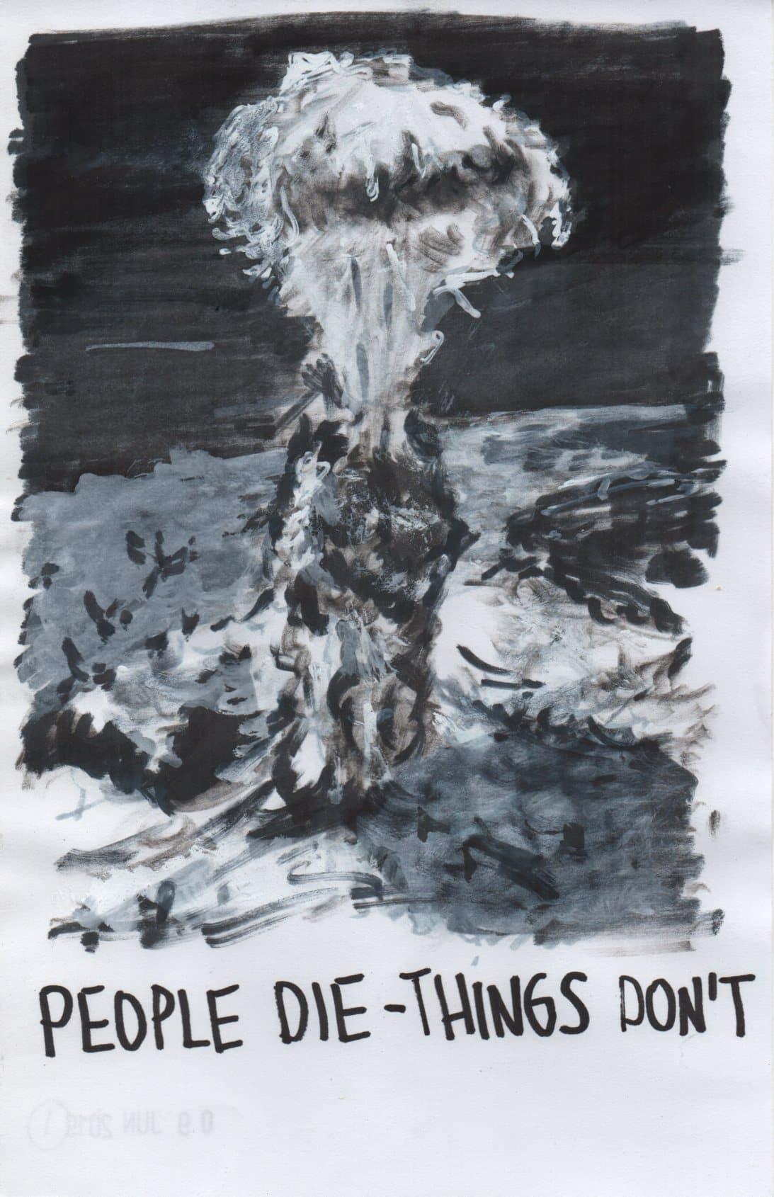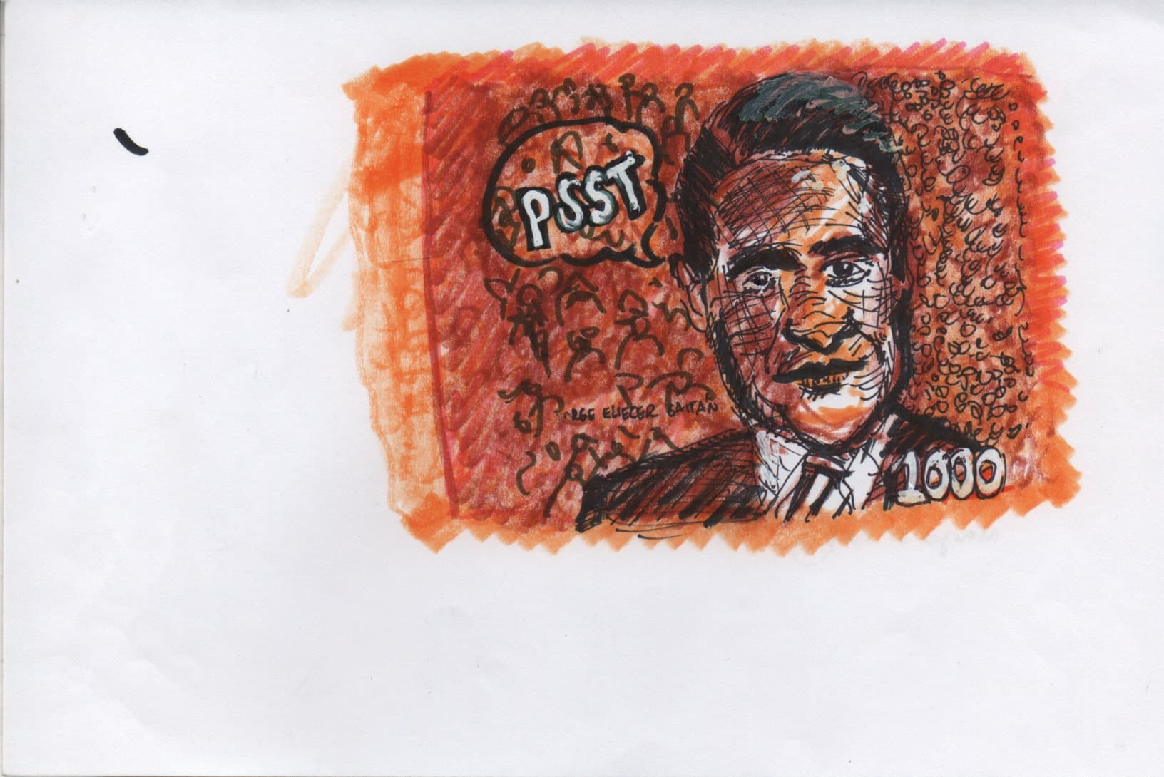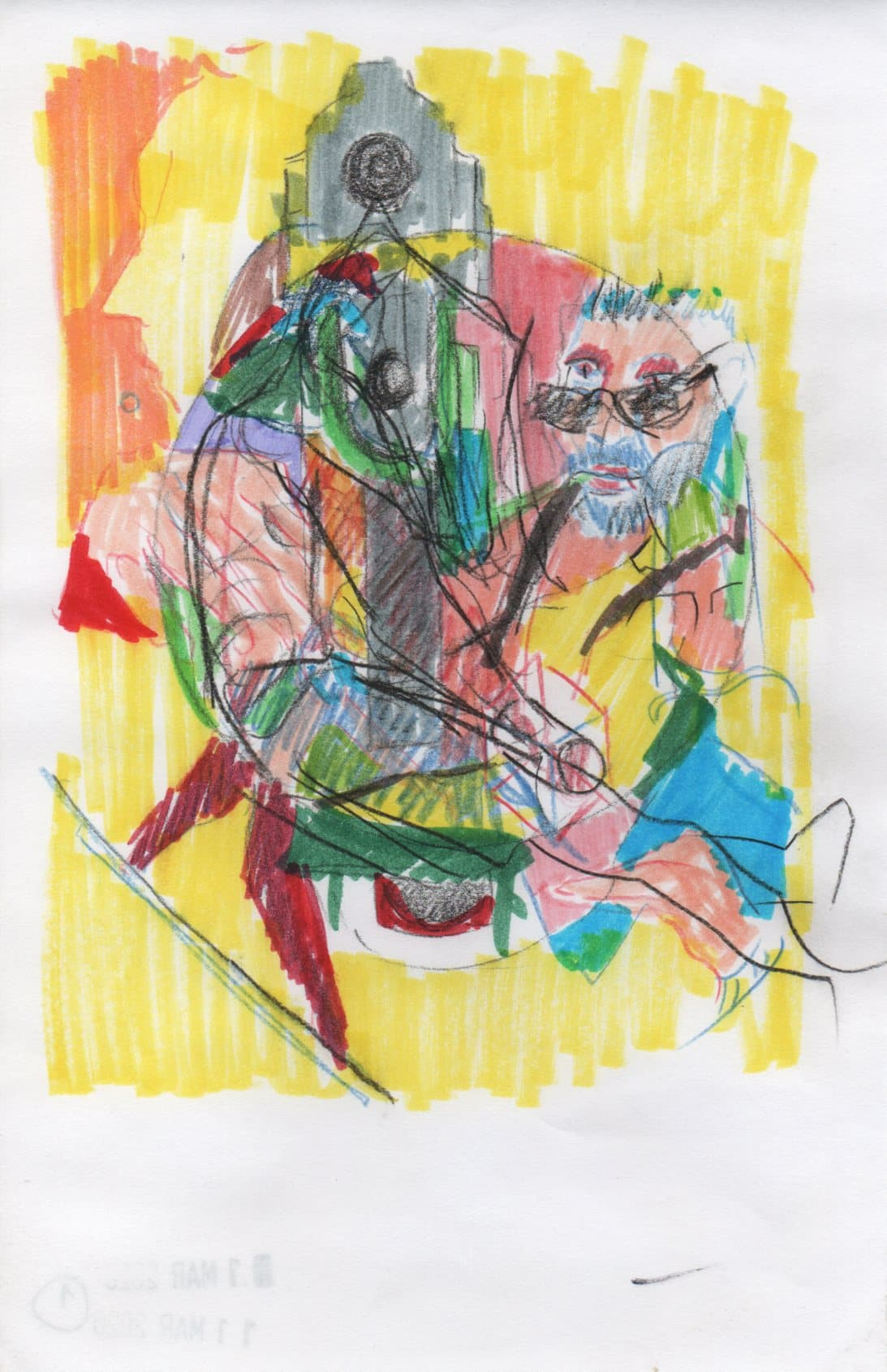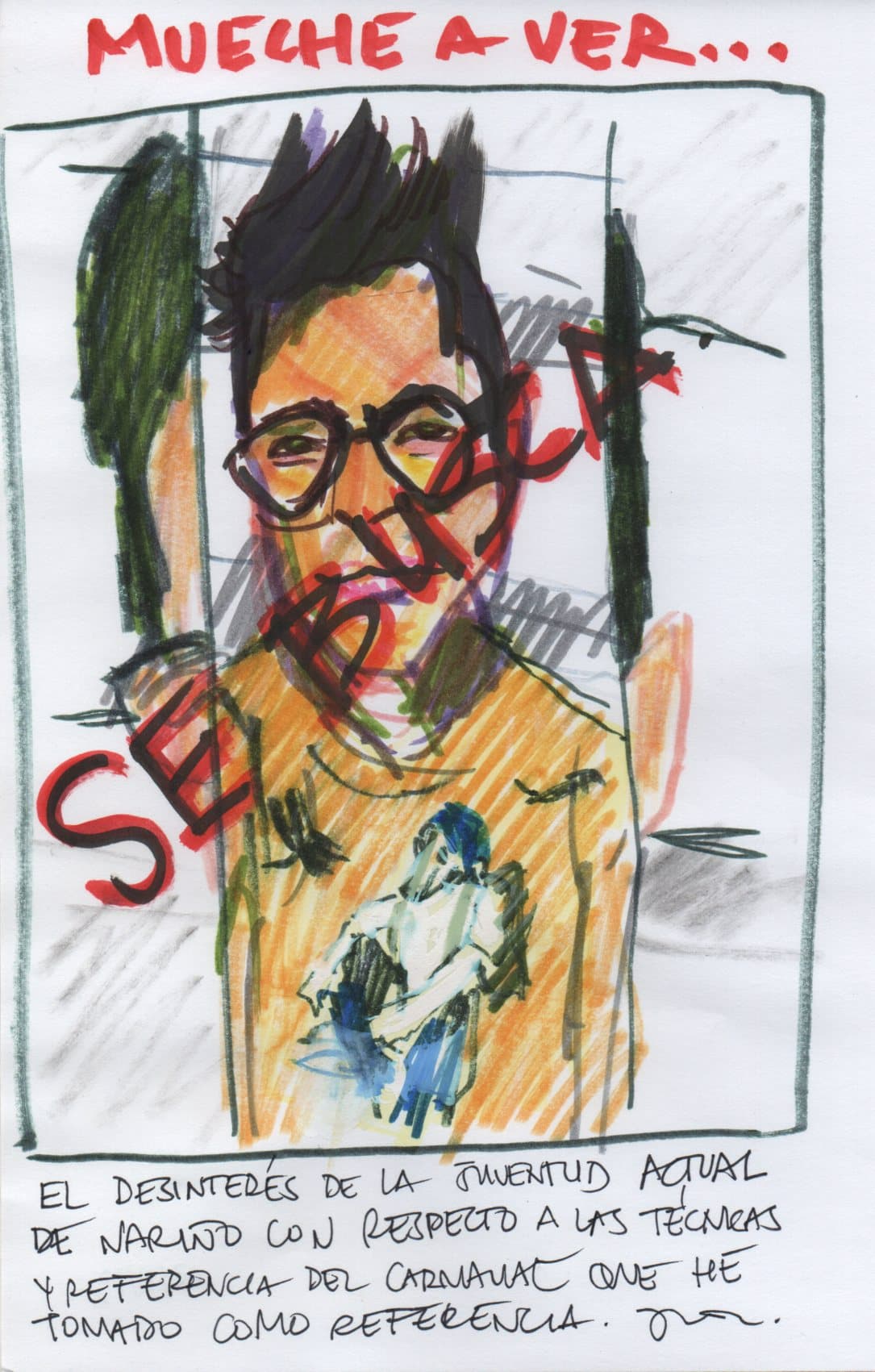 Los dibujos se presentan como intentos humorísticos con la capacidad de sorpresa en resultados que no están controlados. Lejos de pretenciones académicas, se deja que la naturaleza de los mismos hable más allá de la mano de quien los hace. El dibujo en esencia es entonces un ejercicio de la mirada y el cerebro más que de la mano y en consecuencia, la dislocación entre ambos polos produce en algunos casos nuevas formas de repensar lo que se ve. La serie de dibujos incluye "Retratos" en los que se propende por una visión psicológica de los sujetos; "Autorretratos" (ABK, A1C, A2C, AUM, ARB) que permiten resignificar la visión personal que se tiene mediante la observación interior; "Pensamientos" que hacen un llamado metafórico a recuerdos íntimos que se hicieron en fechas específicas y que se desvían en flores genéricas; "Olas" a manera de reminiscencia de recuerdos que van y vuelven a las orillas de la nostalgia; "Tragedias" que trivializan y vacían de significado las imágenes y el contexto en el que se originaron; "Retratos hablados" que son descripciones en palabras en un intento de generar canales del ojo a la boca para convertir en el acto hablado la mirada; y "Variaciones" sobre imágenes clásicas que se adaptan a la técnica de los materiales simples de papelería.